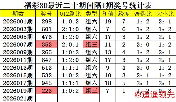 跨度分析:最近周三跨度出现范围在2-9区间,跨度比较集中,上周三跨度为5,跨度上升了3个点位,本期预计跨度下降,参考跨度4。