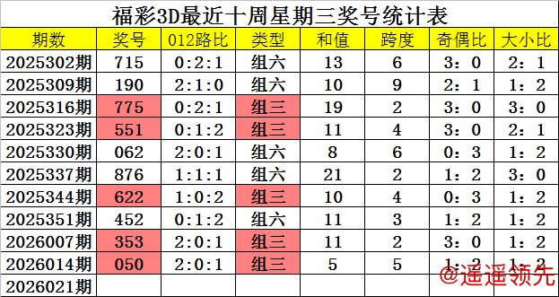 奖号类型分析:从近期周三开奖数据分析,组六号码最近十周出现5次,表现较冷,当期轮空2周,组三开出5次,表现相对较热,本周三预计组六号码回补。